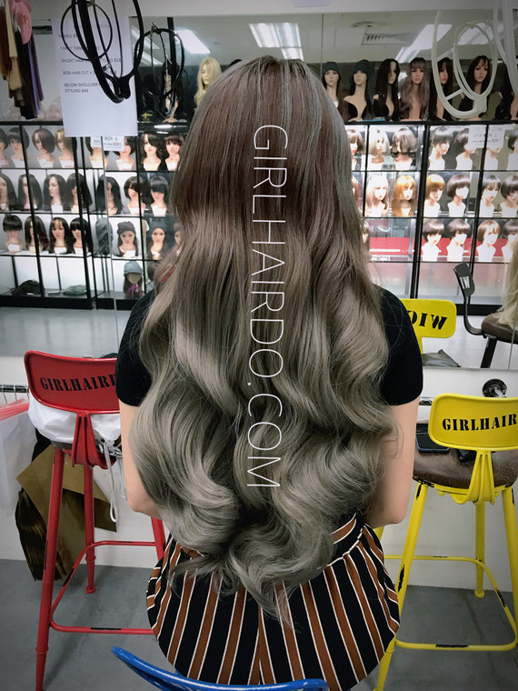 CROWN ROUND SHAPE HAIR EXTENSIONS BROWN TO SILVER
